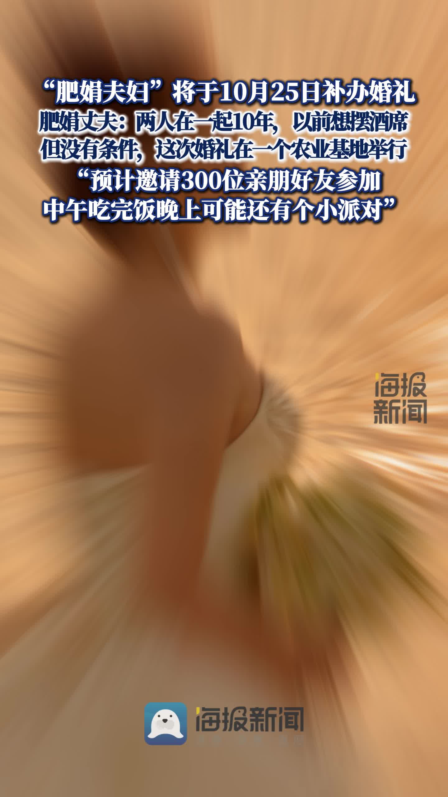 • “肥娟夫婦”將于月底舉辦婚禮 丈夫稱倆人相識10年,婚禮將宴請300人